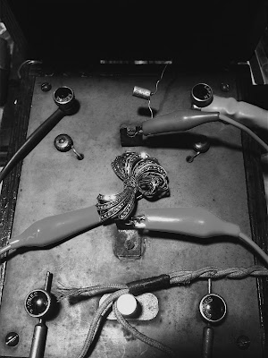 My mother gave me the two pieces of Ann's marcasite jewellery I am using in this experiment, as a graduation present. I wear the brooch in the same place I sometimes clip radio cegeste's transmitter aerial when performing. I hope neither of them are too offended by me re-purposing such exquisite heirlooms (taonga) to channel aetheric-material ghosts, while also thinking back toward the work of this country's female radio pioneers in the first decades of the 20th century.