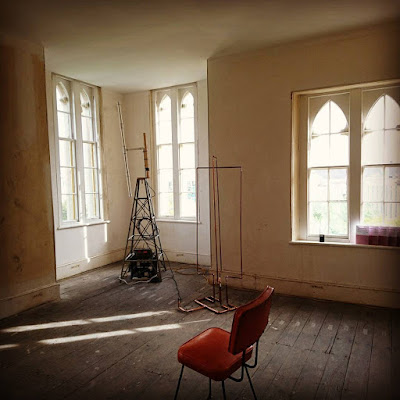 Arriving in the city I stayed with a family friend, a retired teacher and dedicated wine buff who lived over the bridge in the suburb of Bellerive. He had kindly offered to drive me around the place, including to my old primary school and the semi-rural house I grew up in, where I spent 10 minutes standing in the long grass trying to understand how to open myself adequately to history as a set of sensations, to get to grips with positioning myself in a place I had mythicised for so long it seemed both calcified in memory as a set of fixed reference points or a mnemonic grid, and completely vaporous; a miasma of insubstantial, fleeting sensations. This experiential disjunct, inevitably, included a literal struggle with the notion of memory as and/or against recording. While I took a ten minute field recording of the silence of the family home I'd left when I was seven, which included the inaudible sounds of myself thinking, grappling with updating a historic set of references overturned and polished so many times they'd become like precious stones in my mind, underneath the sounds of wind, and other sounds I only remember because they are captured in the recording itself, I tried to get all other references out of my head and just 'be there', but then a German Shepherd barked, and I was immediately self-cast as Andrei Gorkachov in Tarkovsky's Nostalgia.